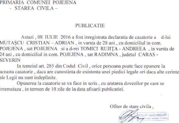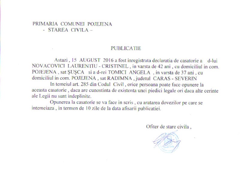 Novacovici Laurentiu-Cristinel Tomici Angela 15 septembrie 2016 -
