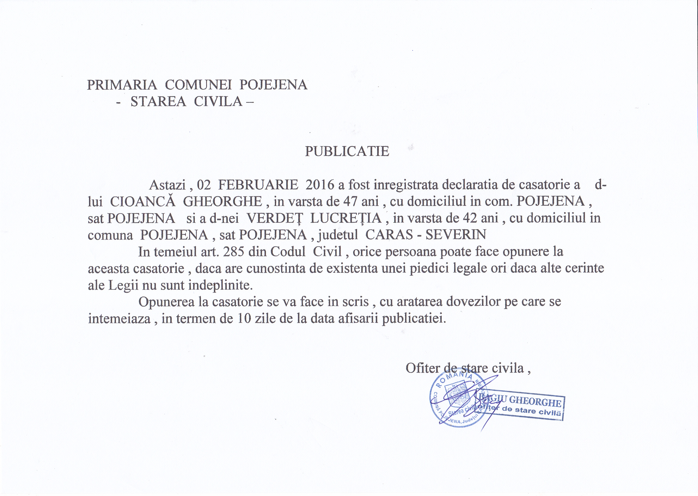 Cioanca Gheorghe Verdet Lucretia 02 februarie 2016 -