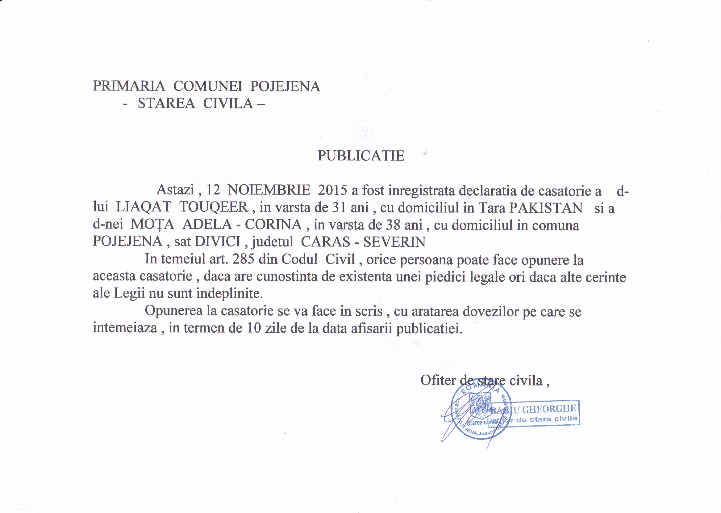 Liaqat Touqeer Mota Adela-Corina 12 noiembrie 2015 -